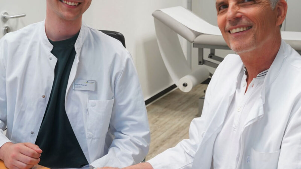 In der Sportklinik Hellersen fand Pascal Hagenah optimale Bedingungen für seine Facharztausbildung. Die sechsjährige Weiterbildung in der Orthopädie und Unfallchirurgie ist vor allem praxisorientiert: Assistenzärzte lernen durch operative Eingriffe und den Klinikalltag. „Zu Beginn hält man die Haken, später mit mehr Erfahrung darf man selbstständig operieren“, erklärt er. Ein besonderes Highlight war seine erste Endoprothesen-Operation, die er zusammen mit seinem Vater Dr. Joachim Hagenah durchführen konnte – ein unvergessliches Erlebnis.