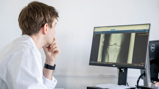 Jetzt steht die Vorbereitung auf die bevorstehende Operation an. Heute assistiert er bei einer Kniearthroskopie im ambulanten OP. „Steht eine Operation bereits am Vortag fest, informiere ich mich im Vorfeld gezielt über den Eingriff, um optimal vorbereitet zu sein.“ Besonders wenn er selbst operiert, ist eine gründliche Planung für ihn essenziell – auch wenn er jederzeit auf die Unterstützung eines Oberarztes zählen kann.