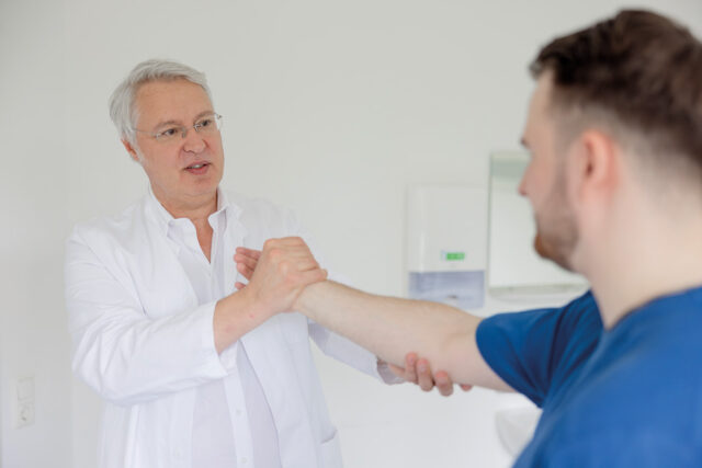 Verletzungen passieren plötzlich – im Alltag, beim Sport oder in der Freizeit. Wenn Knochen brechen, Bänder reißen oder Gelenke verletzt werden, ist schnelle und kompetente Hilfe gefragt. In solchen Momenten braucht es nicht nur medizinisches Können, sondern auch Erfahrung, Teamarbeit und echtes Einfühlungsvermögen. Im Interview spricht Dr. Markus Leyh, Chefarzt für Schulter-, Ellenbogen-, Kniechirurgie und Traumatologie, über die besondere Stärke der Zusammenarbeit in seinem Team, die hohe Spezialisierung seiner Abteilung durch die Konzentration auf spezielle Behandlungen und über die Faszination der Unfallchirurgie.