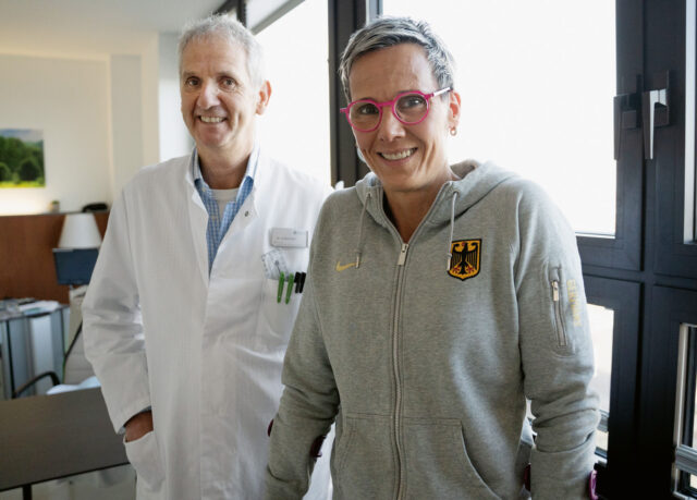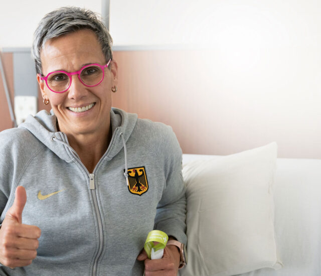 Daher stand für sie außer Frage, dass sie bei erneuten Problemen im Februar 2022 wieder die Sportklinik Hellersen und Dr. Volker Stoll aufsuchte. „Ich hatte keine Schmerzen und das Knie war auch nicht geschwollen, aber ich hatte so ein komisches Gefühl. Meine Ärzte sagten, es sei alles okay. Aber das reichte mir nicht. Deshalb rief ich Dr. Stoll in der Sportklinik Hellersen an. Er untersuchte mein Knie und erkannte sofort das Problem“, schildert Tatjana Schilling. „Wir haben im Rahmen eines arthroskopischen Eingriffs entzündetes Gewebe entfernt und defekten Knorpel am äußeren Oberschenkelknochen stabilisiert, damit das Gelenk wieder besser gleitet“, erklärt Dr. Volker Stoll.